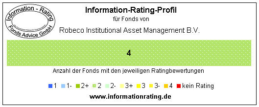 Basis der Bewertungen sind die jeweils Fonds Advice GmbH vorliegenden wesentlichen Anlegerinformationen, Verkaufsprospekte, Jahresberichte bzw. Halbjahresberichte, Factsheets, Internet-Informationen der Verwaltungsgesellschaft sowie die Auswertung weiterer Informationen. Die Bewertungsstufen des Information-Rating sind: 1 (beste Bewertungsstufe), 1-, 2+, 2, 2-, 3+, 3, 3-, 4, kein Rating (niedrigste Bewertungsstufe) und keine Daten. Weitere Details zum Rating-Verfahren finden Sie ► hier.